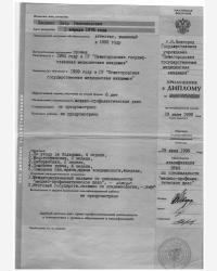 1999 г. – Нижегородская государственная медицинская академия – Врач по специальности «Медико-профилактическое дело».