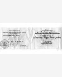 2012 г. – Московский государственный медико-стоматологический университет – присуждена ученая степень кандидат медицинских наук.