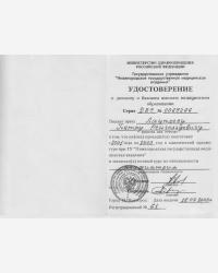 2005 г. - Нижегородская государственная медицинская академия- профессиональная переподготовка по психотерапии.